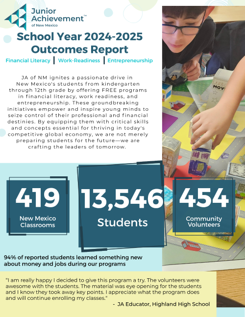 JA of NM served over 13,000 students in the 2024-2025 School Year! Take a look at what else we were able to accomplish and the community partners who helped bring our mission and vision to life.
